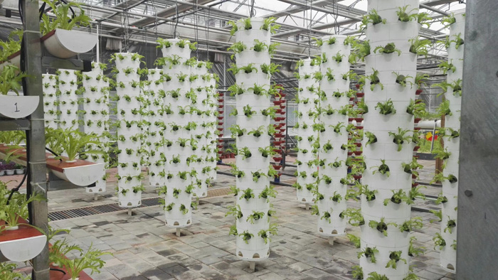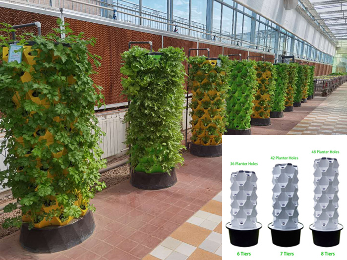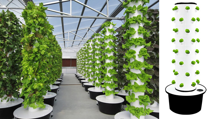采用立柱式设计的垂直水培种植系统,适用于生菜、香草等各种叶菜类作物种植。