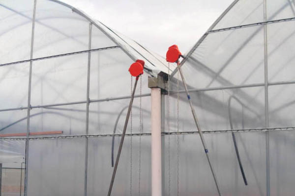 适用于薄膜温室的通风需求。手动卷膜器因其操作便捷和经济实用,是一个理想选择。可选侧面安装和顶部安装。