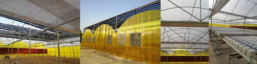 四面采用聚碳酸酯波纹板,屋顶采用