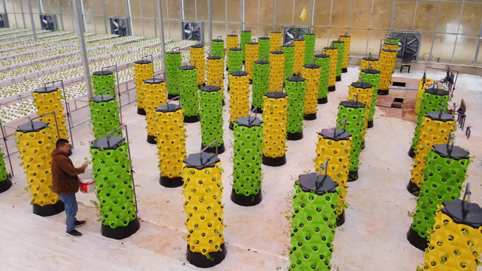 采用立柱式设计的垂直水培种植系统,适用于生菜、香草等各种叶菜类作物种植。