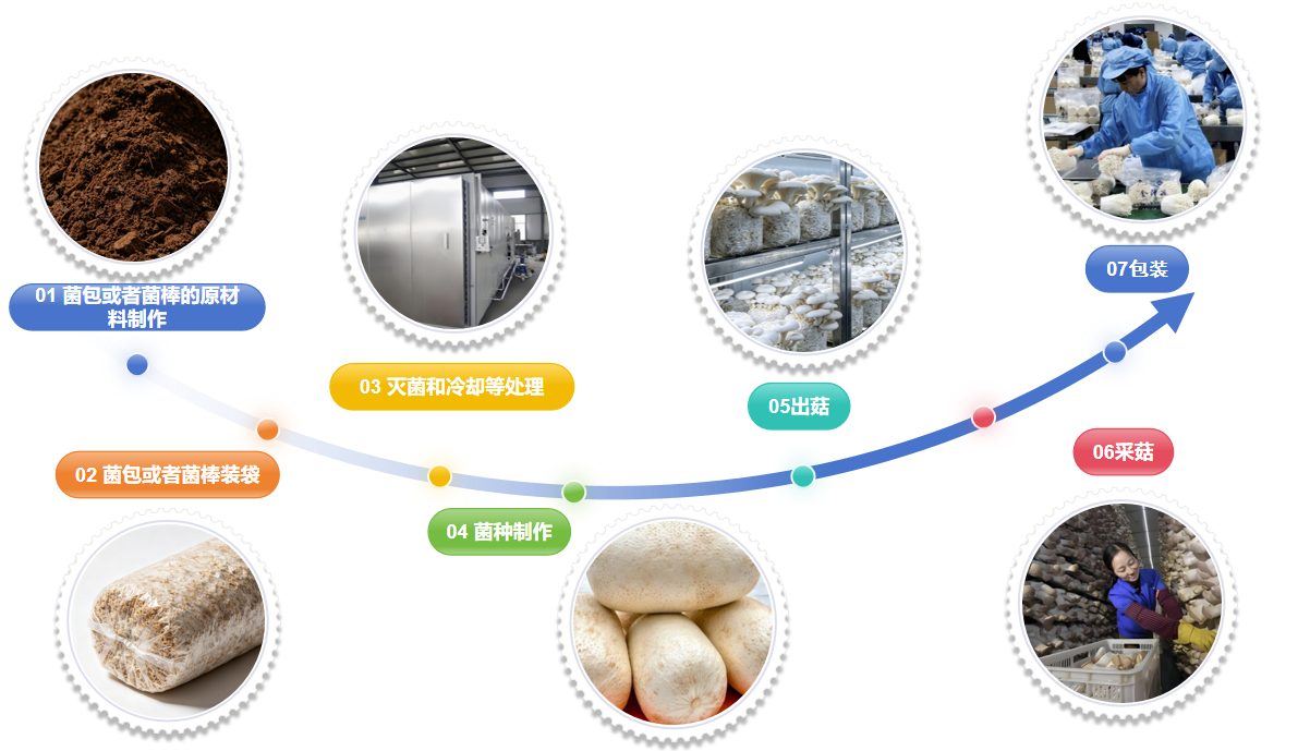 · 农业副产物再利用: 主要利用木屑、玉米芯、米糠等经过严格检验的农林下脚料作为培养基主料。